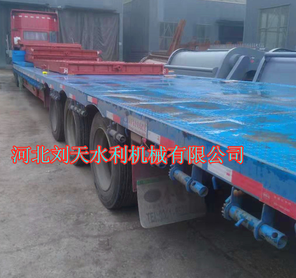 双止水2*2米铸铁闸门、清污机冒雨装车发往内蒙古通辽