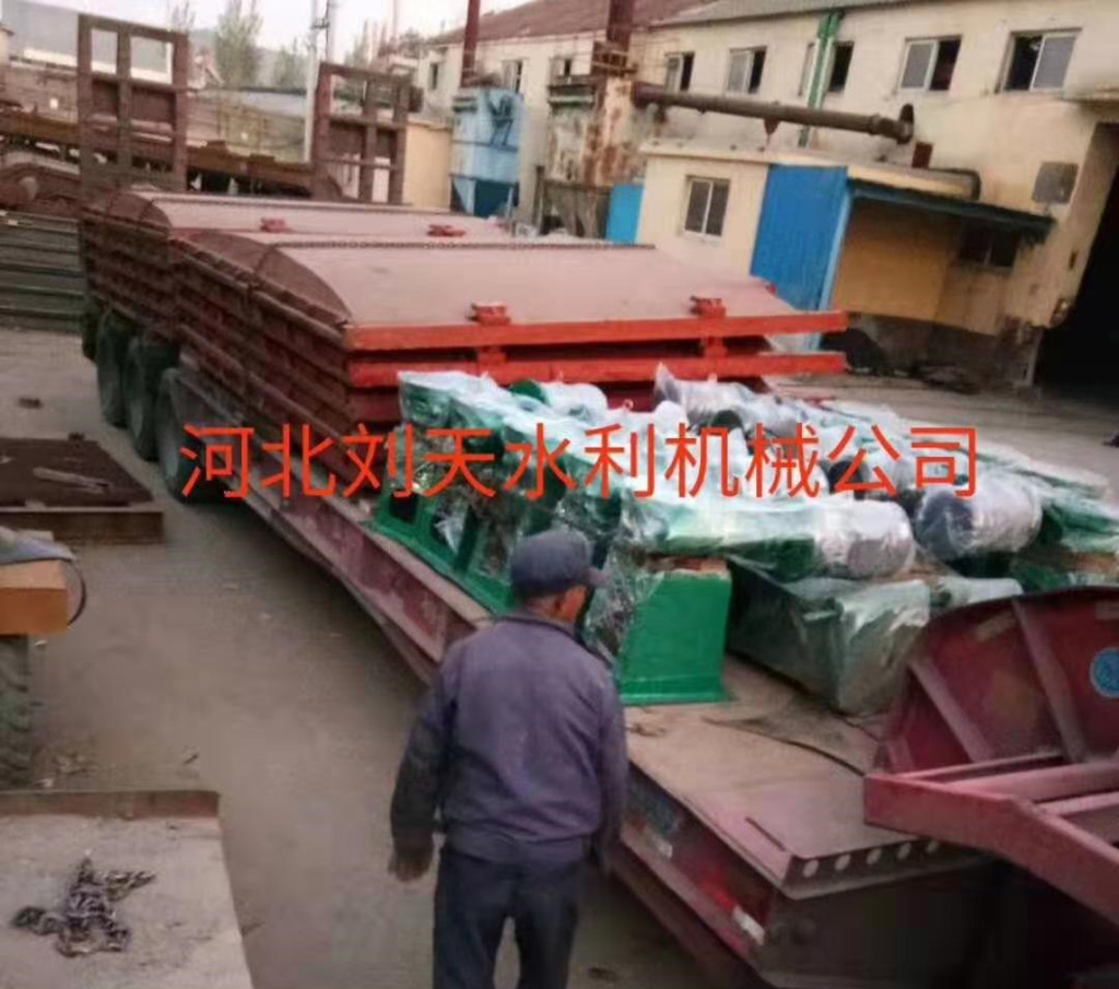 3x2.5米铸铁镶铜闸门,2x10吨直连螺杆启闭机整车发货山东省青岛市